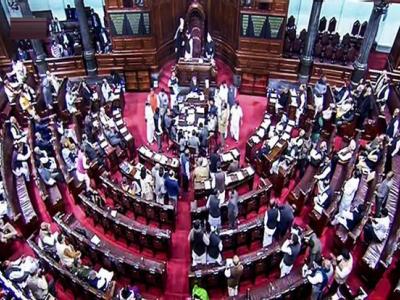 राज्यसभा में रविवार को हुए हंगामे की गूंज सोमवार को भी सुनाई पड़ी और विपक्ष के आठ सदस्यों को सत्र के शेष समय के लिए निलंबित कर दिया गया। निलंबित सदस्यों के सदन से बाहर नहीं जाने और सदन में हंगामा जारी रहने के कारण सदन की कार्यवाही बार-बार बाधित हुयी तथा चार बार के स्थगन के बाद अंतत: पूरे दिन के लिए स्थगित कर दी गयी।