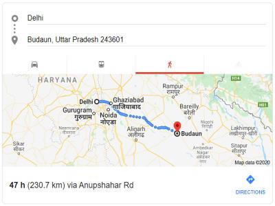 बता दें कि दिल्ली के बदायूं की दूरी लगभग 285 किलोमीटर है। गूगल मैप के अनुसार पैदल जाने के लिए दिल्ली से बदायूं की दूरी 230 किलोमीटर है और इसके लिए 47 घंटे का समय लगेगा।
