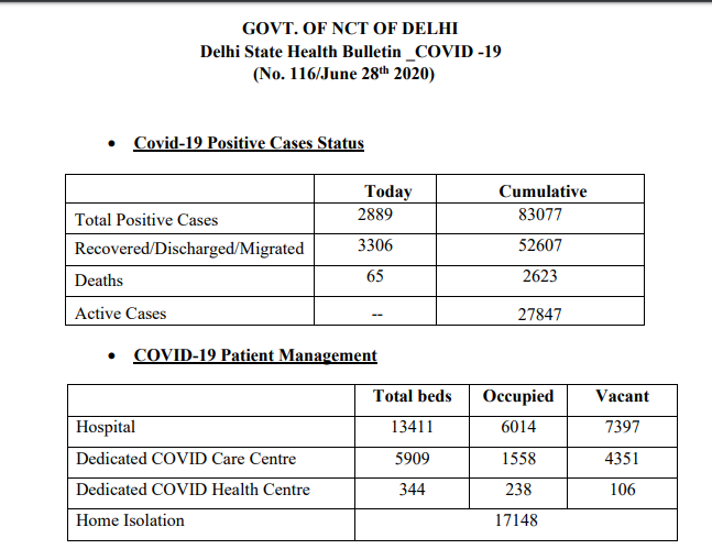 इस तरह से दिल्ली में यदि रविवार के कोरोना संक्रमण के आकड़े को जोड़ दिया जाए तो दिल्ली में पॉजिटिव मामलों की कुल संख्या अब बढ़कर 83,077 हो गई है।