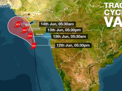 मौसम विभाग के अनुसार भीषण चक्रवाती तूफान वायु अरब सागर के पूर्वी तट को पार कर चुका है। आज दोपहर सौराष्ट्र के तट से 135-140 किमी की रफ्तार वाली हवाएं टकराने का अनुमान है। अधिक पढ़ेंः- Cyclone Vayu: आज गुजरात तट से टकराएगा चक्रवाती तूफान 'वायु', जानिए 10 बड़ी बातें