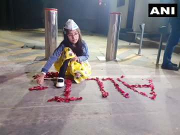 CM केजरीवाल के घर के बाहर रंगोली बनाती एक बच्ची