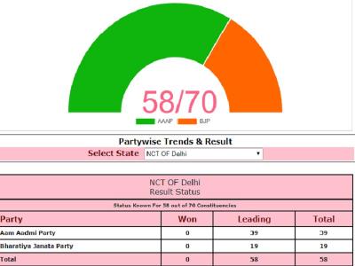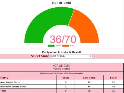 शुरुआती रुझानों में आम आदमी पार्टी को बहुमत, आप 38 सीटों पर आगे, बीजेपी 15 सीटों पर आगे है