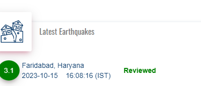 Earthquake of Magnitude:3.1, Occurred on 15-10-2023, 16:08:16 IST, Lat: 28.41 & Long: 77.41, Depth: 10 Km ,Location: 9km E of Faridabad, Haryana, India for more information Download the BhooKamp App https://t.co/bTcjyWm0IA@KirenRijiju@Dr_Mishra1966@moesgoi@Ravi_MoESpic.twitter.com/gG5B4j3oBs