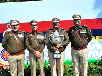 Highlightsसाउथ ईस्ट के डीसीपी डॉक्टर हेमंत तिवारी, एसीपी हरीश कुकरेती और एसएचओ अशोक कुमार।केंद्रीय गृह मंत्री अमित शाह से प्रथम स्थान पर आने पर ट्रॉफी लिया।