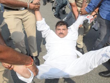 नई दिल्लीः नई एक्साइज पॉलिसी घोटाला मामले में उपमुख्यमंत्री मनीष सिसोदिया से सीबीआई दफ्तर में पूछताछ के बीच जांच एजेंसी के दफ्तर के बाहर धरना-प्रदर्शन कर रहे संजय सिंह समेत कई 'आप' नेताओं और कार्यकर्ताओं को दिल्ली पुलिस ने हिरासत में ले लिया।