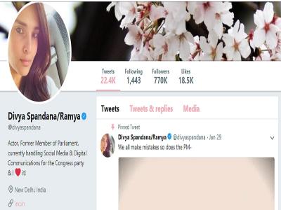 दिव्या ने अपने ट्विटर बायो से भी सोशल मीडिया, AICC को हटा लिया है। इसके बाद से इस खबरों की हवा मिली है। दिव्या के इस्तीफे की खबर फैली, उन्होंने फिर से अपने ट्विटर बायो को अपडेट किया। अपने ट्विटर में उन्होंने फिर लिखा- अभी वह कांग्रेस की सोशल मीडिया को संभाल रही हैं और इसे वह इन्जॉए कर रही हैं।