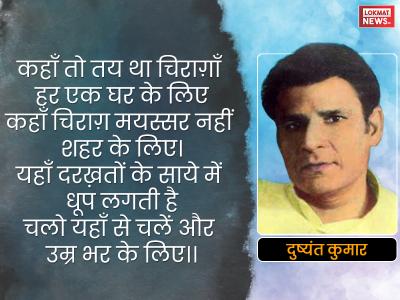 दुष्यंत का जन्म उत्तर प्रदेश के राजपुर नवादा में 1 सितंबर 1933 को हुआ था। उन्होंने इलाहाबाद विश्व विद्यालय से पढ़ाई की और इस शहर से उनका गहरा लगाव रहा। उन्होंने आकाशवाणी में नौकरी करते हुए ही तमाम रचनाएं लिखीं। 30 दिसंबर 1975 को महज 42 वर्ष की इस प्रतिभाशाली शख्सियत का निधन हो गया।