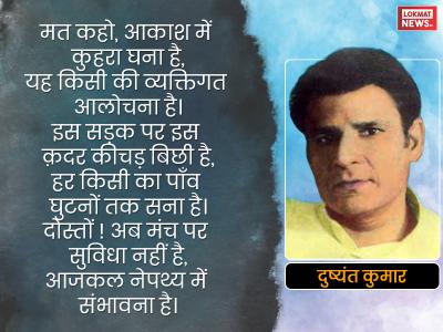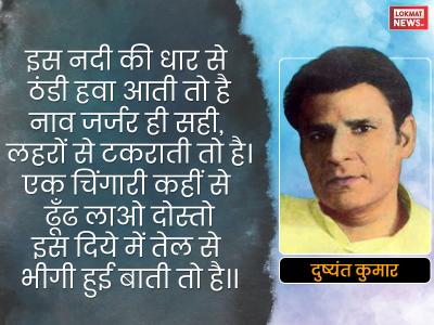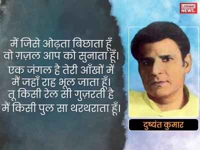 दुष्यंत कुमार ने कविता, गीत, गज़ल, काव्य, नाटक, कहानी जैसी अनेक विधाओं में लेखन किया लेकिन गज़लों की अपार लोकप्रियता ने अन्य विधाओं को नेपथ्य में डाल दिया। पढ़िए, दुष्यंत कुमार की कुछ चुनिंदा गज़ले...