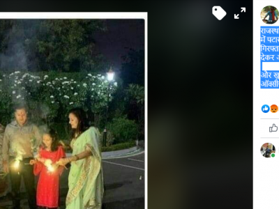 इस तस्वीर को साझा कर लोग दावा कर रहे हैं कि दूसरों के लिए पटाखों पर बैन लगाने वाले अशोक गहलोत खुद के परिवार के साथ पटाखा छोड़ रहे हैं।