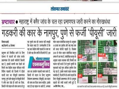 दरअसल लोकमत समाचार ने नागपुर, पुणे और चंद्रपुर के पांच आम नागरिकों को एमएच 49 एई 2700 कार का नंबर भेजकर उस वाहन का पीयूसी मंगवाया. जिसके बाद पुणे से इस कार के तीन प्रमाणपत्र जारी किए गए. एक भोसरी के साईं पीयूसी सेंटर और अन्य दो जंगली महाराज रोड के कलमाड़ी पेट्रोल पंप से मिले हैं.