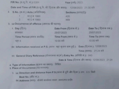 निमेष पाठक ने कहा कि उपरोक्त आरोप अत्यंत गंभीर प्रवृत्ति के हैं जिनकी तत्काल विस्तृत जांच किया जाना अत्यंत आवश्यक है ताकि पत्र में जो आरोप लगाए हैं वास्तव में लगाए गए हैं वह वास्तविक है या नहीं उक्त व्यक्ति वास्तविक है या नहीं इसकी जांच हो। आवेदन पर संयोगितागंज पुलिस ने धारा 420,469 के तहत मामला दर्ज कर लिया है।