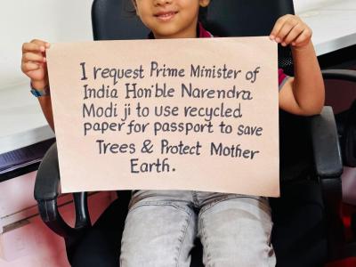 रूही ने एक पीएम मोदी से एक क्रांतिकारी अनुरोध किया है। उन्होंने प्रधानमंत्री से पारंपरिक पासपोर्ट पेपर की जगह रिसाइकिल पेपर का इस्तेमाल करने की बात कही है।
