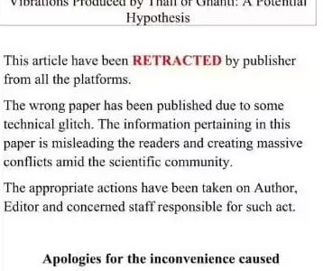 लेटेस्ट रिपोर्ट्स से पता चलता है कि पेपर को वापस ले लिया गया है। सोशल मीडिया पर बहुत ज़्यादा शेयर किए गए एक स्क्रीनशॉट में एक रिट्रैक्शन नोटिस दिख रहा है जिसमें लिखा है: "इस आर्टिकल को पब्लिशर ने सभी प्लेटफॉर्म से वापस ले लिया है। कुछ टेक्निकल गड़बड़ी की वजह से गलत पेपर पब्लिश हो गया है। इस पेपर में दी गई जानकारी पढ़ने वालों को गुमराह कर रही है और साइंटिफिक कम्युनिटी के बीच बड़े झगड़े पैदा कर रही है। इस काम के लिए ज़िम्मेदार लेखक, एडिटर और संबंधित स्टाफ पर सही एक्शन लिया गया है। हुई परेशानी के लिए माफ़ी।"