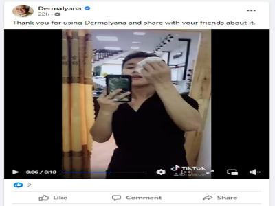 वहीं दूसरी पोस्ट पहली पोस्ट के एक घंटे बाद प्रकाशित हुई थी। इसमें एक संभावित टिक टॉक वीडियो था जो जिसे एक कंपनी का प्रमोशन वीडियो कहा जा सकता है। पोस्ट में लिखा था, "डर्मालियाना का इस्तेमाल करने के लिए धन्यवाद और इसके बारे में अपने दोस्तों के साथ शेयर करें।