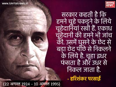 10 अगस्त 1995 को परसाई का जबलपुर में निधन हो गया। नीचे पढ़ें हरिशंकर परसाई के चुटीले व्यंग्य की बानगी-