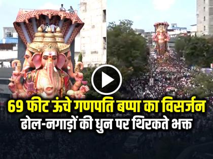 Hyderabad 69 Feet Tall Ganpati Visarjan Video: हैदराबाद सहित पूरे राज्य में 11 दिनों तक चलने वाले विनायक चतुर्थी उत्सव के समापन के उपलक्ष्य में शनिवार को भगवान गणेश की मूर्तियों का विसर्जन किया गया। भगवान गणेश की मूर्तियों का विसर्जन यहां की प्रसिद्ध हुसैन सागर झील और अन्य जलाशयों में किया जा रहा है। पुलिस और सरकारी अधिकारी विसर्जन के अंतिम दिन यात्रा के सुचारू संचालन के लिए व्यवस्था कर रहे हैं। खैरताबाद के प्रसिद्ध पंडाल में स्थापित 69 फुट ऊंची भगवान गणेश की मूर्ति के विसर्जन की यात्रा शनिवार सुबह शुरू हुई। हैदराबाद यातायात पुलिस ने ‘एक्स’ पर एक पोस्ट में बताया, “खैरताबाद बड़े गणेश जी शोभा यात्रा शुरू। खैरताबाद बड़े गणेश जी की भव्य विसर्जन यात्रा खैरताबाद मंडपम से हुसैन सागर तक होगी। भक्तगण मंत्रोच्चार और भक्ति के साथ सड़कों पर कतारों में खड़े हैं।”