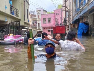 तेलंगाना में भीषण बारिशः मुख्य सचिव सौमेश कुमार ने बताया कि राहत दल उन इलाकों से पंप के जरिए पानी को निकाल रहे हैं जहां जलभराव हो गया था। साथ में वहां लोगों की मदद कर रहे हैं तथा यातायात को बहाल कर रहे हैं।