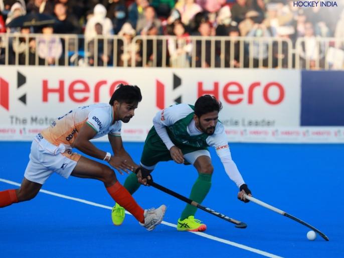 पाकिस्तान ने अहमद नदीम (8वें मिनट) के गोल से बढ़त हासिल की लेकिन हरमनप्रीत सिंह (13वें और 19वें मिनट) ने दो पेनल्टी कॉर्नर को गोल में बदलकर भारत को जीत दिलाई। यह इस टूर्नामेंट में पाकिस्तान की पहली हार थी। भारत और पाकिस्तान दोनों ने इससे पहले अंतिम चार के लिए क्वालीफाई कर लिया था।