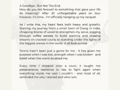 अपने फैसले के बारे में बताते हुए बोपन्ना ने इंस्टाग्राम पर लिखा, “आप उस चीज़ को कैसे अलविदा कहते हैं जिसने आपकी ज़िंदगी को मतलब दिया? टूर पर 20 यादगार सालों के बाद, अब समय आ गया है... मैं ऑफिशियली अपना रैकेट टांग रहा हूँ। भारत का प्रतिनिधित्व करना मेरी ज़िंदगी का सबसे बड़ा सम्मान रहा है।”