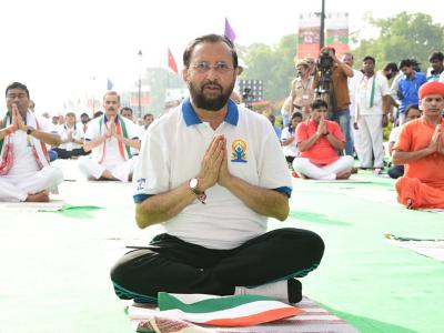 राजपथ से हिमालय की चोटियों तक योग का महाप्रदर्शन, अमित शाह-प्रकाश जावड़ेकर समेत कई हस्तियों ने किया योग