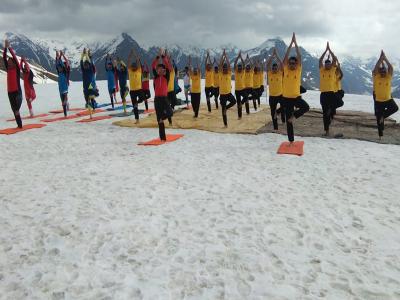 आईटीबीपी ने समस्त देश में सबसे खास हिमालय की चोटियों पर बर्फ के उपर और नदियों में बोट के उपर योगाभ्यास किया।