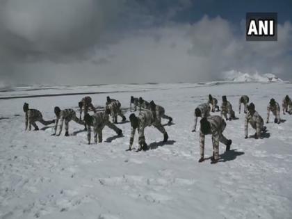 आईटीबीपी के जवान उत्तरी लद्दाख में 18000 फीट की ऊंचाई पर -20 डिग्री सेल्सियस तापमान पर योग करते हुए....