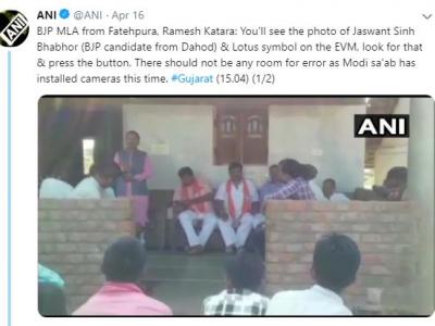 बीजेपी विधायक रमेश कटारा अपने हालिया बयान में मतदाताओं को धमकाते दिख रहे हैं। उन्होंने दाहोद संसदीय क्षेत्र में चुनाव प्रचार के दौरान कहा, 'ईवीएम में कमल का निशान दिखाई देगा। उसी को खोजकर बटन दबाना है। कोई गलती नहीं होनी चाहिए क्योंकि मोदी साब ने इसबार कैमरे लगवा रखे हैं।' उनके इस बयान पर विवाद मच गया है। हालांकि रमेश कटारा के दावे में कोई आधार नहीं है। इससे पहले सुल्तानपुर से बीजेपी प्रत्याशी मेनका गांधी ने भी अल्पसंख्यकों को धमकाते हुए कहा था कि वह विकास कार्यों में उन क्षेत्रों को प्राथमिकता देंगी जहां से अधिक वोट मिलेंगे।