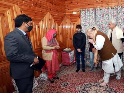 गृह मंत्रालय के एक अधिकारी ने कहा, “गृह मंत्री जम्मू कश्मीर पुलिस के निरीक्षक परवेज के घर गए जिनकी आतंकवादियों ने हत्या कर दी थी।”