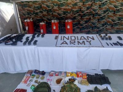 सेना ने दावा किया कि जम्मू क्षेत्र के नौशेरा सेक्टर के लाम इलाके में घुसपैठ विरोधी अभियान के दौरान मारे गए दो आतंकवादियों के पास से भारी मात्रा में हथियार और गोला-बारूद बरामद किया गया है। रक्षा सूत्रों ने बताया कि बरामदगी में दो एके-47 राइफल, विजन डिवाइस के साथ एक एम4 कार्बाइन, एक पिस्तौल, आठ ग्रेनेड, विभिन्न गोला-बारूद, व्यक्तिगत कपड़े और खाद्य पदार्थ शामिल हैं।