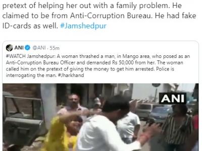 झारखंड के जमशेदपुर की रहने वाली महिला जब फर्जी एंटी करप्शन ब्यूरो ऑफिसर की पिटाई कर रही थी तो इलाके में काफी काफी भीड़ इकट्ठी हो गई थी। आस-पास के लोगों ने भी उसे पकड़ कर लाठी-डंडे से खूब पीटा था।
