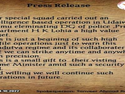 इतना ही नहीं गुट ने यह भी चेतावनी दी थी कि वह भारत को कश्मीर में किसी भी जी -20 बैठक का आयोजन करने की अनुमति नहीं देने के लिए दृढ़ है और इसे रोकने के लिए कुछ भी और सब कुछ करेगा। वहीं, हेमंत लोहिया की हत्या की खबर मिलते ही जम्मू कश्मीर अलर्ट मोड पर आ गया है क्योंकि इतनी बड़ी वारदात का होना कहीं न कहीं सुरक्षा पर सवाल उठाती है।