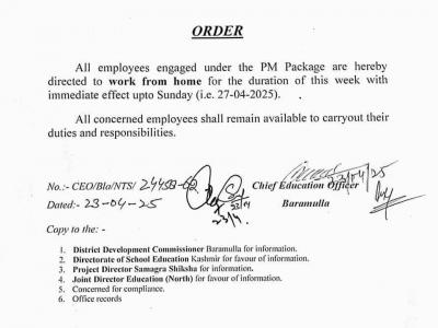 जम्मूः क्या कश्मीर के मोर्चे पर अगले तीन दिनों में कुछ बड़ा होने जा रहा है? यह सवाल प्रदेश सरकार के उस निर्देश के बाद उठने लगा है जिसमें उसने पीएम पैकेज के तहत कश्मीर में सरकारी नौकरियां कर रहे कर्मचारियों को 27 अप्रैल तक वर्क फ्राम होम करने के लिए कहा है। यही नहीं यह आशंकाएं इसलिए पैदा हो रही हैं क्योंकि रक्षामंत्री राजनाथ सिंह ने भी 25 व 26 अप्रैल के अपने लद्दाख के दौरे का रद्द कर दिया है। जबकि इससे पहले राष्ट्रपति भी पहलगाम के बर्बर हमले के बाद आसाम के अपने दौरे को रद्द कर चुकी हैं। दरअसल यह जिन सरकारी कर्मचारियों को वर्क फ्राम होम के निर्देश दिए गए हैं वे सभी कश्मीरी पंडित हैं जो कई साल पहले पलायन कर देश के विभन्न हिस्सों में बस गए थे और अब सरकारी शर्तों के मुताबिक, पीएम पैकेज के तहत कश्मीर के विभिन्न हिस्सों में नौकरियां कर रहे हैं। जम्मू-कश्मीर पुलिस ने पहलगाम आतंकी हमले के अपराधियों के बारे में सूचना देने पर 20 लाख रुपये का ईनाम देने की घोषणा की।