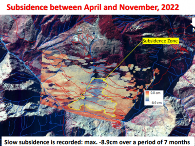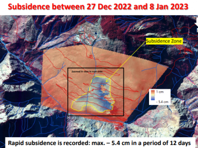 दिसंबर 2020 और जनवरी 2023 के बीच 12 दिनों में जोशीमठ का धंसाव क्षेत्र 5.4 सेमी डूब गया, जबकि अप्रैल और नवंबर 2022 के बीच सात महीनों में यह 9 सेमी दर्ज किया गया।
