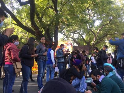 दिल्ली में युवा पत्रकार मनदीप पुनिया की गिरफ्तारी के खिलाफ पुलिस मुख्यालय पहुंचे पत्रकार, दर्ज करा रहे हैं विरोध