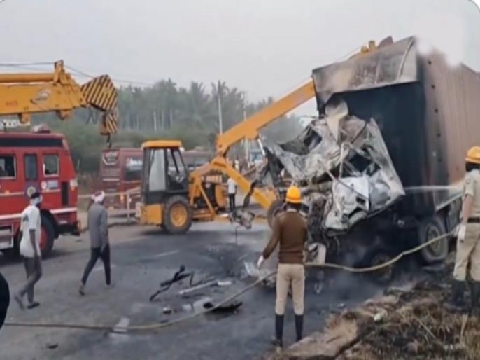 Karnataka road accident: कर्नाटक के चित्रदुर्ग जिले के गोरलाथु गांव के पास गुरुवार सुबह भीषण सड़क हादसा हो गया, जिसमें 10 लोगों की मौत हो गई। बताया जा रहा है कि हादसा उस वक्त हुआ जब स्लीपर बस और लॉरी की टक्कर हो गई। शुरुआती रिपोर्टों के मुताबिक, नेशनल हाईवे 48 पर लॉरी ने बस को टक्कर मार दी, जिससे यह हादसा हुआ।