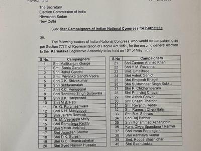 Karnataka Assembly Elections 2023: कांग्रेस ने जारी की स्टार प्रचारकों की सूची, सचिन पायलट का नाम नहीं