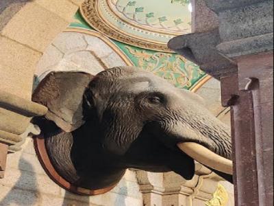 जैसे ही मैंने परिसर में प्रवेश किया, प्रवेश द्वार पर असली हाथी की खाल के दो बेहद विशाल हाथी के चेहरे लटकाये गये हैं। हिंदू देवता भगवान नरसिम्हा का दो सिर वाला गिद्ध या गरुड़ का अवतार वाडियार साम्राज्य की आधिकारिक मुहर है जिसे महल के संग्रहालय में प्रदर्शित कई वस्तुओं में भी देखा जा सकता है।