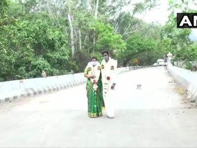 दूल्हे रॉबिन्सन का पुल के दूसरे छोर पर खड़ी मन्नार की प्रियंका शादी के जोड़े में इंतज़ार कर रही थी. चार कदम चलते हुए बिना किसी गाजे बाजे के रॉबिन्सन और प्रियंक ने एक दूसरे को अपना जीवनसाथी बना लिया. दोनों ने लॉकडाउन खत्म होने का इंतज़ार किया और अनलॉक 1 का एलान होते ही एक दूसरे का हाथ थाम लिया.