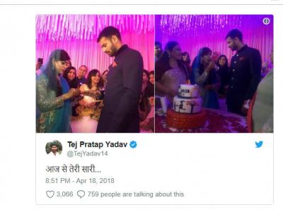 - तेज प्रताप ने शादी के बाद अपनी पहली तस्वीर इंस्टाग्राम पर शेयर किया था। अपनी नई-नवेली दुल्हन ऐश्वर्या के साथ तेज ने यादव परिवार के आधिकारिक बंगले में खिंचाई थी। उसको भी डिलीट कर दिया गया है।