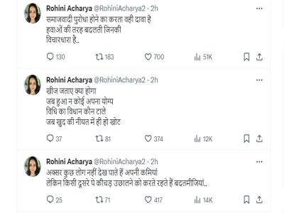 इसके बाद गुरुवार को रोहिणी आचार्य की ओर से एक के बाद एक ट्वीट के जरिए अप्रत्याशित प्रतिक्रिया आई है। उन्होंने नीतीश कुमार पर तीखा कटाक्ष किया। हालांकि उन्होंने बिना नाम लिए बिहार के सीएम पर "एक समाजवादी जो हवाओं की तरह विचारधारा बदल रहा है" के रूप में संदर्भित किया और उनके इरादों और कानून के शासन के पालन पर सवाल उठाए। ये ट्वीट राजनीतिक परिदृश्य में संभावित तनाव की ओर इशारा करते हैं।