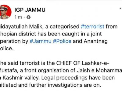 जैशे मुहम्मद का ही आतंकी गुट लश्करे मुस्तफा का आतंकी हिदायतुल्ला को पकड़ा गया है।