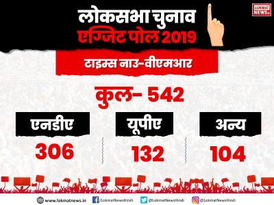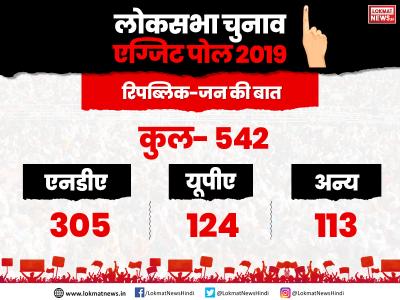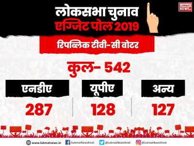 लोकसभा चुनाव 2019 के लिए किए गए एग्ज़िट पोल में टाइम्स नाउ-वीएमआर, रिपब्लिक टीवी-सी वोटर, रिपब्लिक भारत- जन की बात और न्यूज़ नेशन के अनुसार बीजेपी नीत एनडीए को बहुमत का जादुई आंकड़ा मिल सकता है। 11 अप्रैल से 19 मई के बीच सात चरणों में कुल 542 सीटों के लिए मतदान हो चुका है। बहुमत के लिए किसी भी दल या गठबंधन को 272 सीटों पर जीत हासिल करनी होगी।
