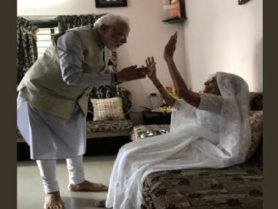 वोट से पहले पीएम मोदी ने लिया मां का आशीर्वाद