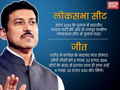 जीतः राठौड़ ने कांग्रेस के कद्दावर नेता डॉक्टर सीपी जोशी को 3 लाख, 32 हजार, 896 वोटों के अंतर से हराया। साथ ही साथ उन्हें 6 लाख, 32 हजार 930 वोट मिले।