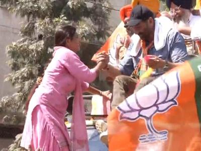 एक्टर सनी देओल को गाड़ी पर चढ़ महिला ने की KISS, बटाला में कर रहे थे रोडशो