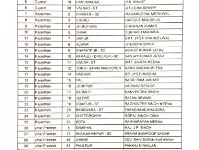 राजस्थान में जोधपुर सीट से मुख्यमंत्री अशोक गहलोत के पुत्र वैभव गहलोत को उम्मीदवार बनाया गया है। इसके अलावा टोंक सवाई माधोपुर से नमो नारायण मीणा, उदयपुर से रघुवीर मीणा और कई अन्य नेताओं को टिकट मिला है। लोकसभा चुनाव के लिए पार्टी ने यह 13वीं सूची जारी की है।