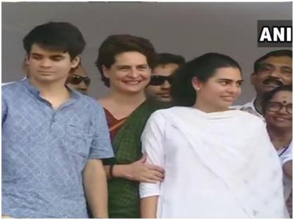 प्रियंका गांधी ने अपने बच्चों के साथ की चुनावी रैली
