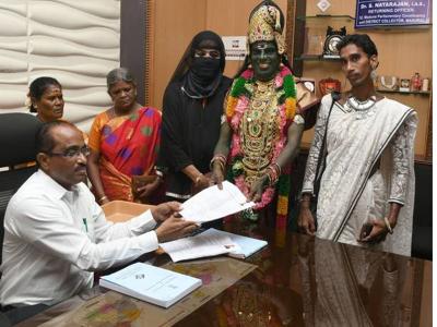 लोकसभा चुनाव में इस बार ट्रांसजेंडर भारती कन्नम्मा भी अपना भाग्य आजमा रही हैं। वह तमिलनाडु की मदुरै लोकसभा सीट से चुनावी मैदान में हैं और निर्दलीय प्रताशी के तौर पर विरोधियों की धड़कनें बढ़ा रही हैं। अभी हाल ही में जब वह नामांकन दाखिल करने के लिए पहुंची तो उनकी विशेष वेशभूषा थी। इससे पहले भारती कन्नम्मा 2016 में तमिलनाडु विधानसभा चुनाव लड़ चुकी हैं।