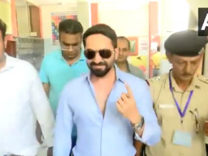 अभिनेता आयुष्मान खुराना चंडीगढ़ में एक मतदान केंद्र पर मतदान करने के बाद अपनी उंगली पर अमिट स्याही का निशान दिखाते हुए कहा, ''मैं अपना वोट डालने और अपने अधिकार का प्रयोग करने के लिए अपने शहर वापस आया... मुंबई में इस बार बहुत कम मतदान हुआ लेकिन हमें अपना वोट डालना चाहिए।"