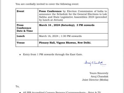 Press Conference by the Election Commission to announce the schedule for General Elections 2024 & some State Assemblies will be held at 3 pm tomorrow, 16th March. It will be live streamed on the social media platforms of the ECI: ECI pic.twitter.com/JVGGQfMYgw